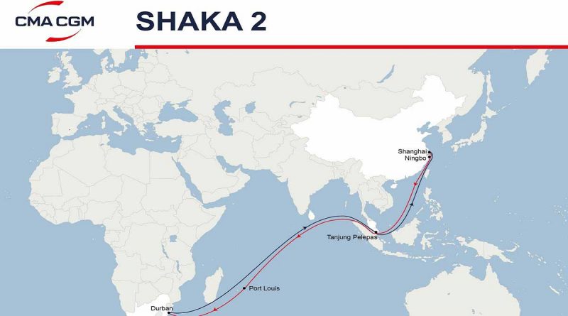 Shanghái – Ningbo – Tanjung Pelepas – Port Louis – Durban – Tanjung Pelepas – Shanghái.